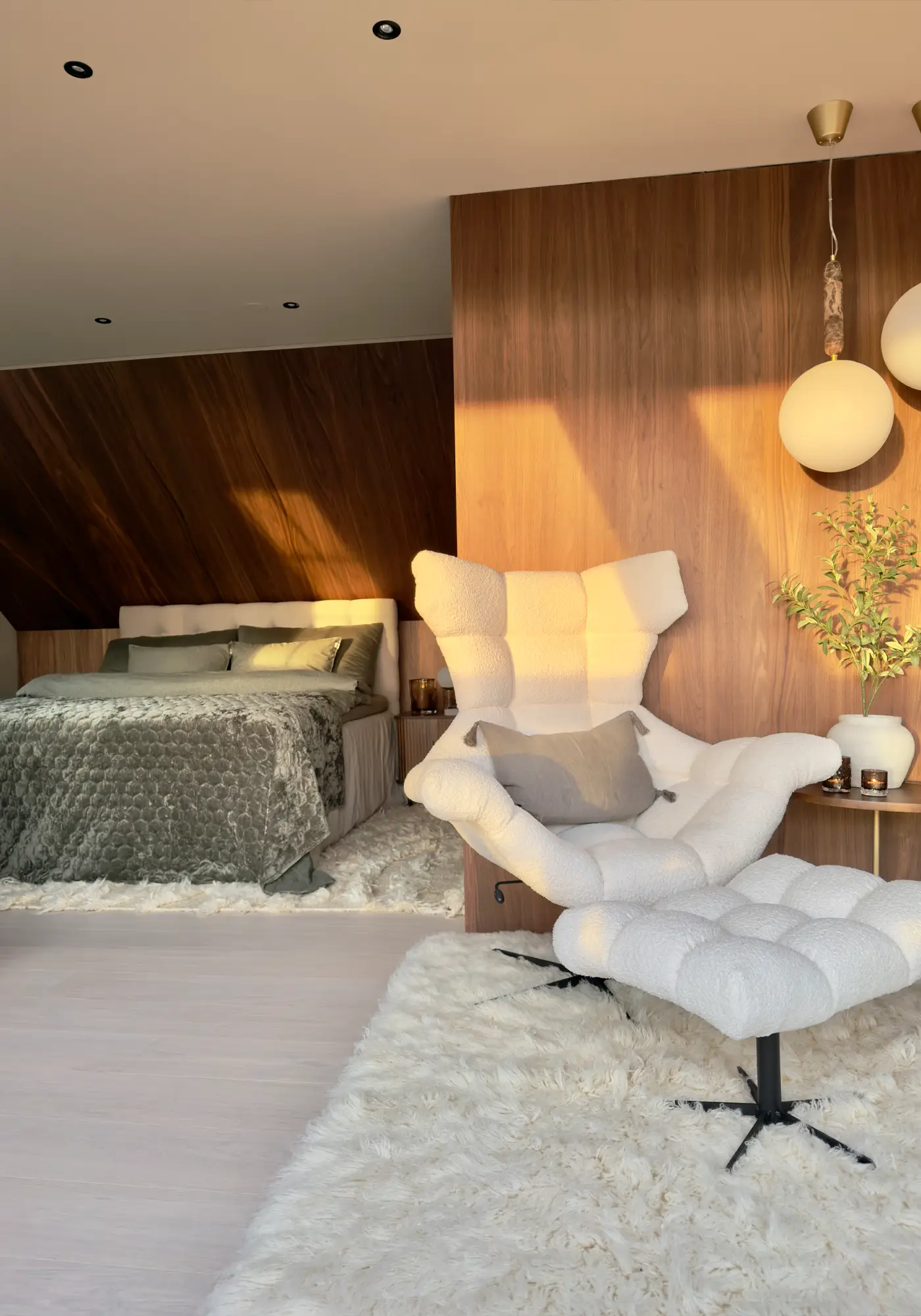 To, gdzie umieścisz ściany żebrowane, zależy wyłącznie od Ciebie. Ściany żebrowane można opisać jako moduł dostosowywany do własnych potrzeb. Niektórzy decydują się na pozostawienie paneli tylko na ograniczonej części ściany, inni natomiast na pokrycie wszystkich murów ścianami żebrowanymi. Ponadto świetnie sprawdza się instalowanie ścian z listew w suficie. Masz więc wiele możliwości, aby urządzić swoją sypialnię dokładnie tak, jak chcesz, a jednocześnie spać wyjątkowo dobrze dzięki właściwościom dźwiękochłonnym.